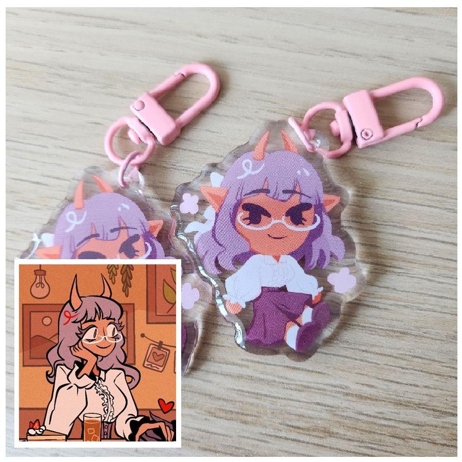 1 Character in this pose, drinking a drink such as boba or drink of your choice, bag colour, and 5 - 7 items depending on size/type