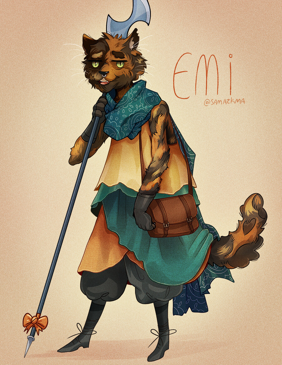 Half body of your character in a pose of your choosing, 5-7 items depending on size/type